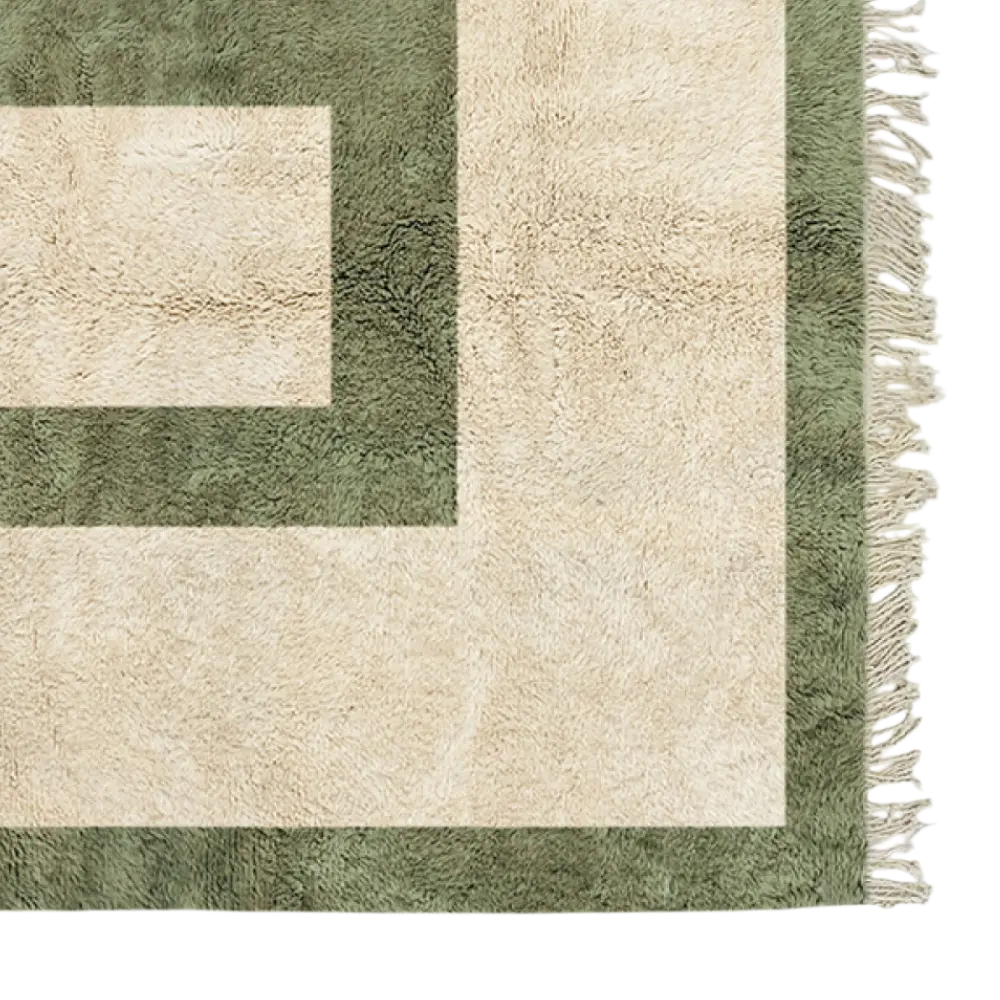 Crafted from 100 percent natural wool, the Atlas Grid rug offers plush texture underfoot and natural insulation year-round. The grid pattern defines seating areas, adds depth to neutral rooms, and complements wood, stone, or modern furnishings. As a green Moroccan rug, it combines durability with timeless cultural craftsmanship.