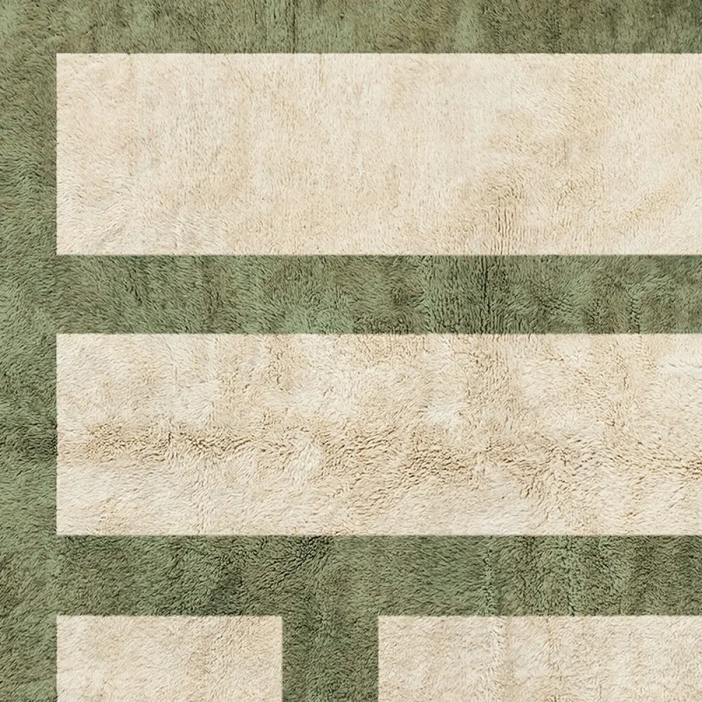 Beige Green Rug | Atlas Grid with Modern Geometry
