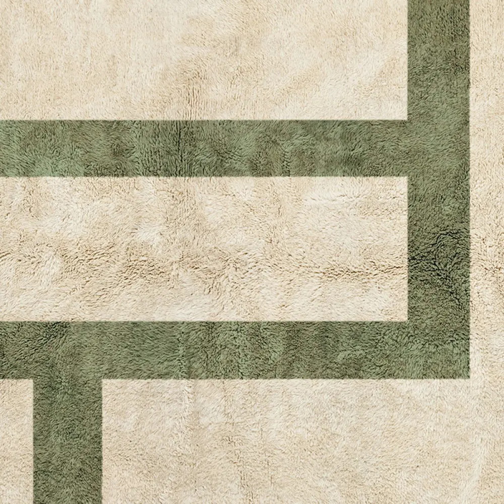 The Atlas Grid beige green rug is more than a floor covering. With its geometric olive green design, pure wool texture, and contemporary appeal, it is a handmade work of art that enriches your home while supporting artisan traditions.