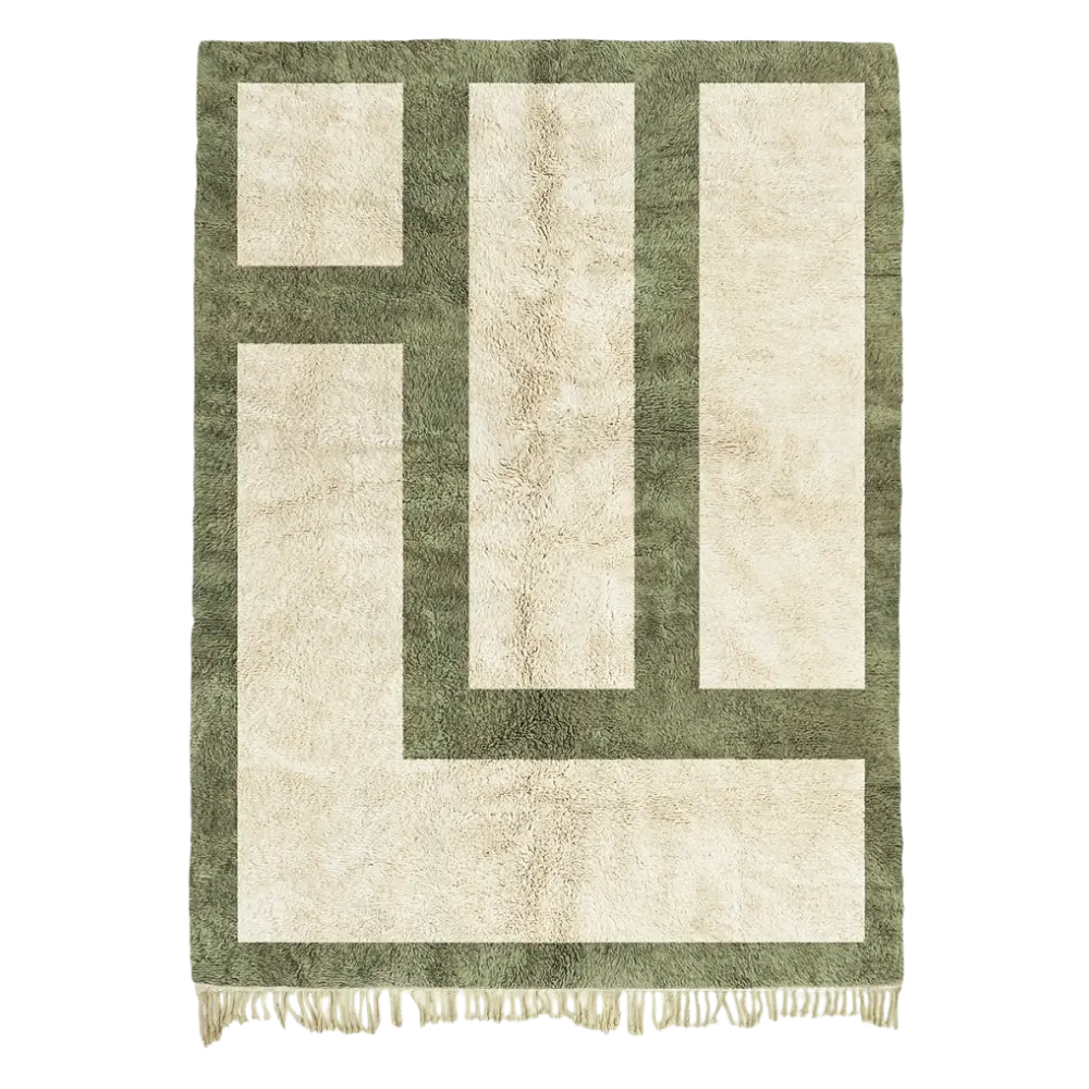 Each Atlas Grid beige green rug is handwoven by artisans in the Atlas Mountains using locally sourced wool. The clean grid design represents balance and order, while the olive green tones give warmth and depth. This rug celebrates traditional weaving while embracing a modern look.