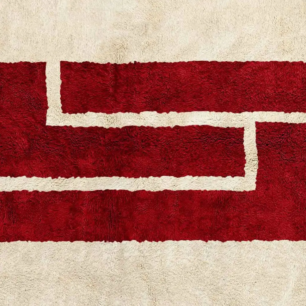 The Atlas Heart Red and Beige Area Rug is more than a floor covering. With its bold central motif, soft wool texture, and artisan craftsmanship, this contemporary rug is both a piece of Moroccan tradition and a work of modern design.
