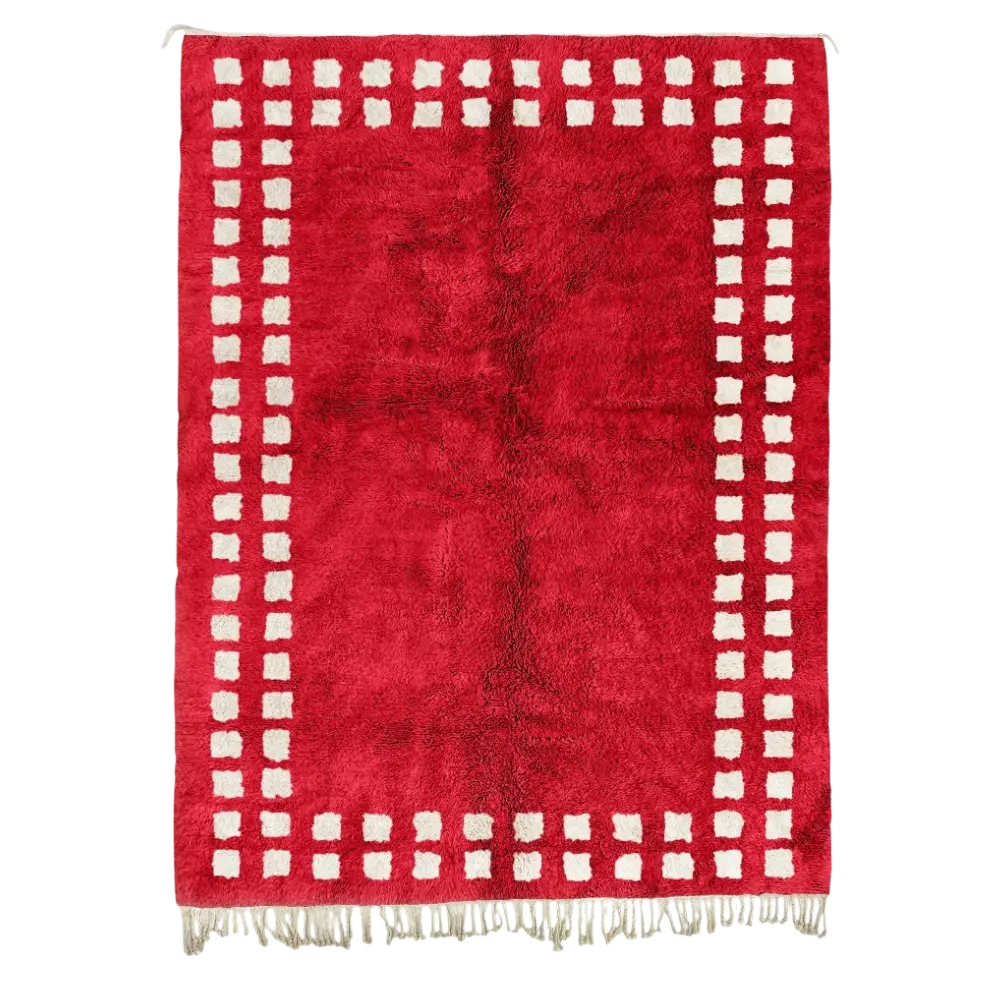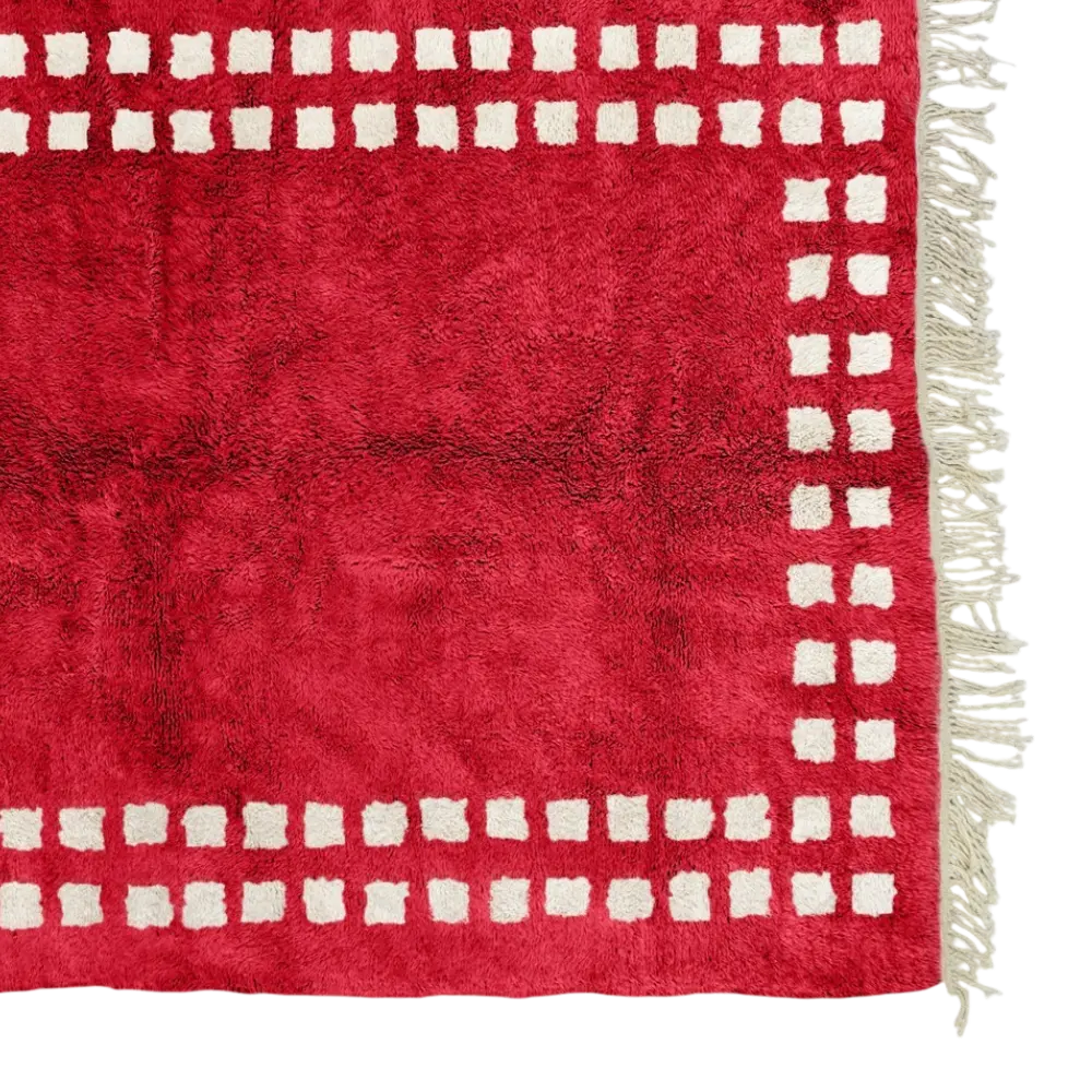 The Marrakech Squares Red Beige Rug is more than a floor covering. With its bold red base, cream beige border, and authentic craftsmanship, it is a contemporary rug that combines Moroccan tradition with modern style.