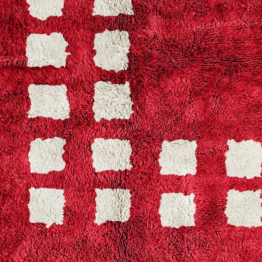 Every Marrakech Squares Red Beige Rug is handwoven by skilled artisans in the Atlas Mountains. Using locally sourced wool, each rug reflects centuries of Moroccan weaving heritage. The red field radiates bold energy, while the beige border creates a structured, modern frame. As a red Moroccan rug, it is both authentic and timeless.